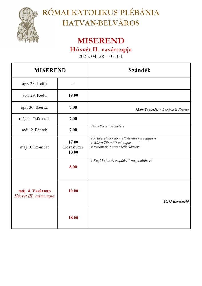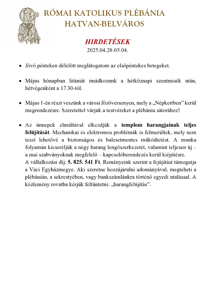 Vasárnapi hírlevél, 2025. április 27.