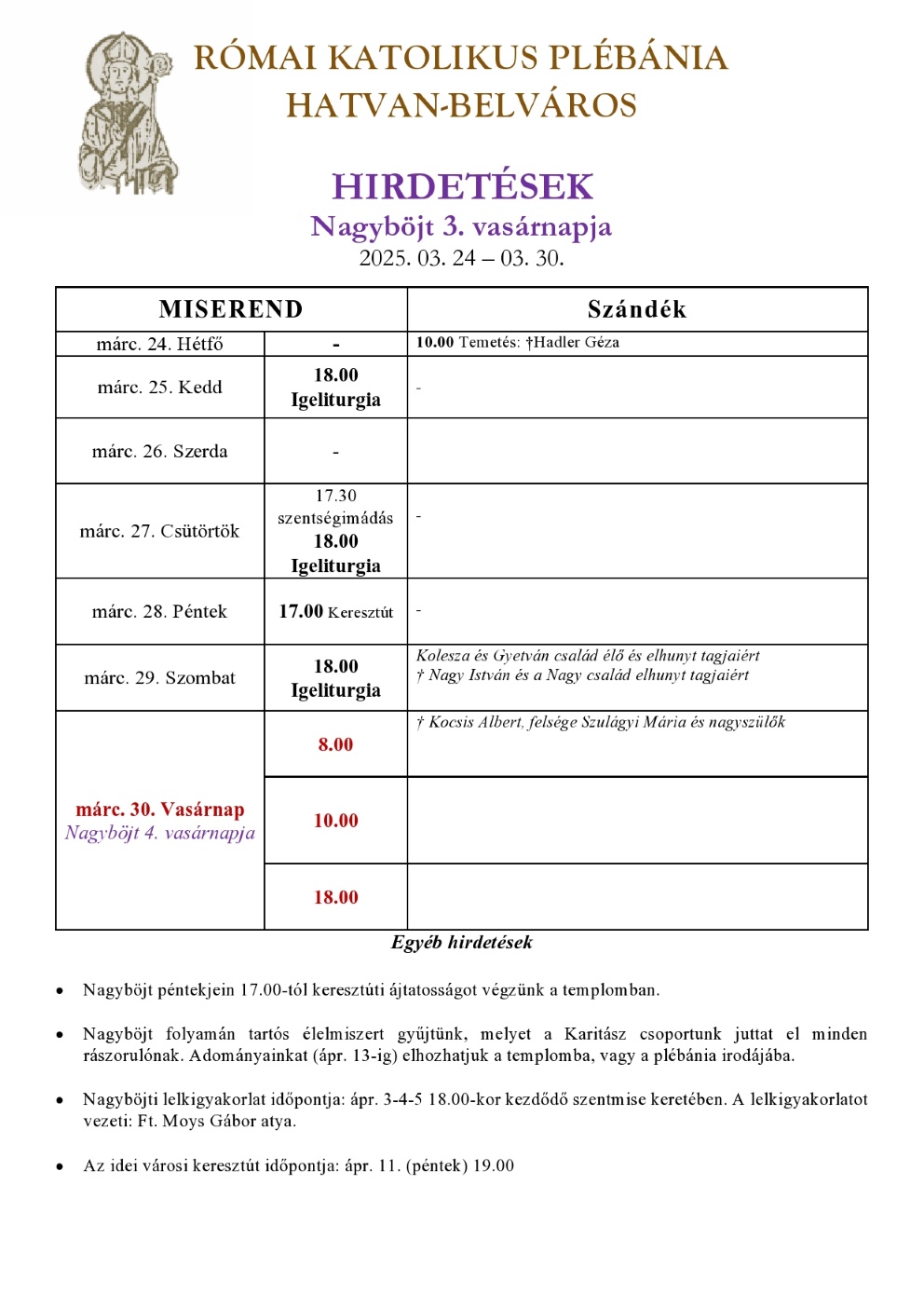 Vasárnapi hírlevél, 2025. március 23.